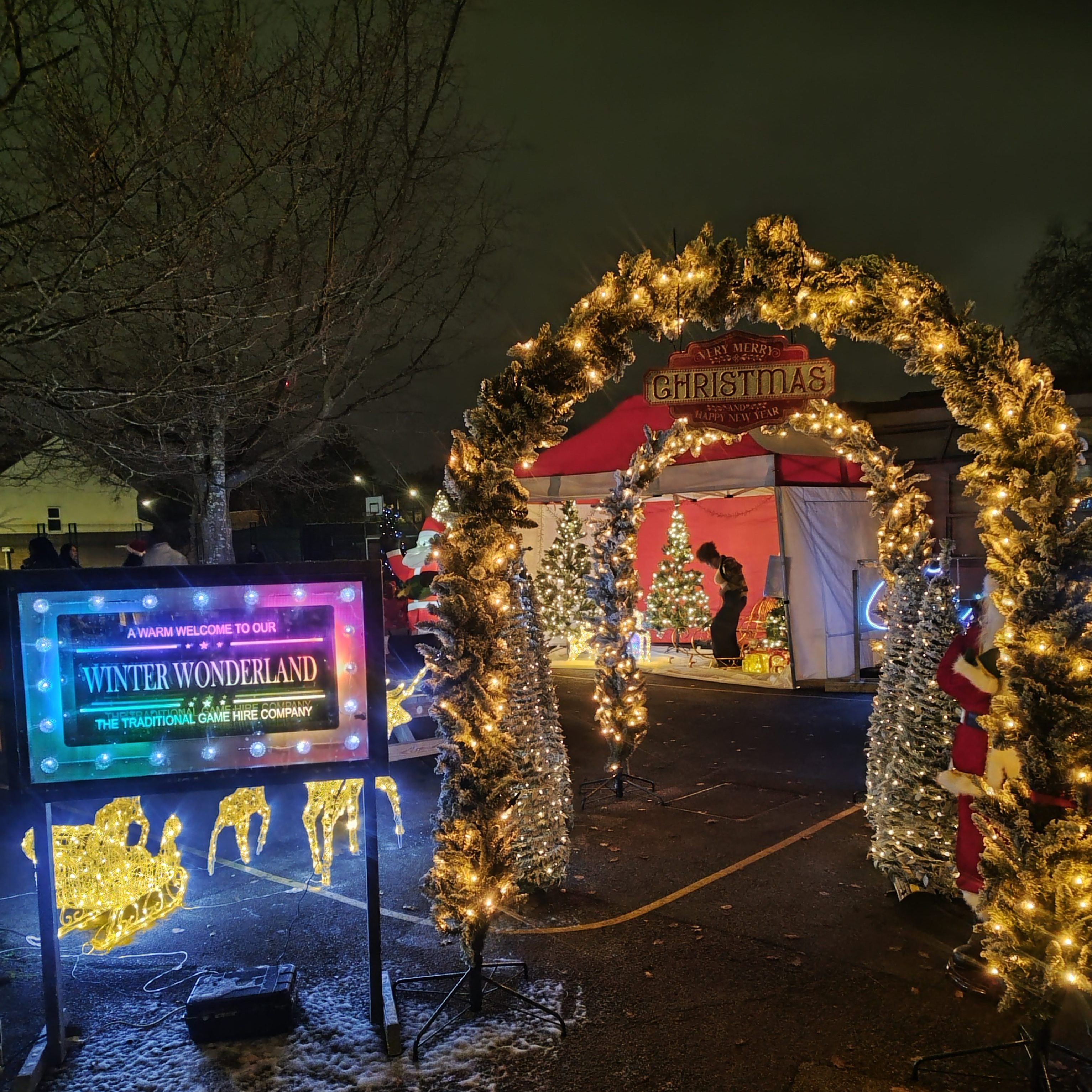 - Winter Wonderland Santa’s Grotto with decorations, trees, gazebo, Sleigh, gifts for the children and of course Santa Claus!